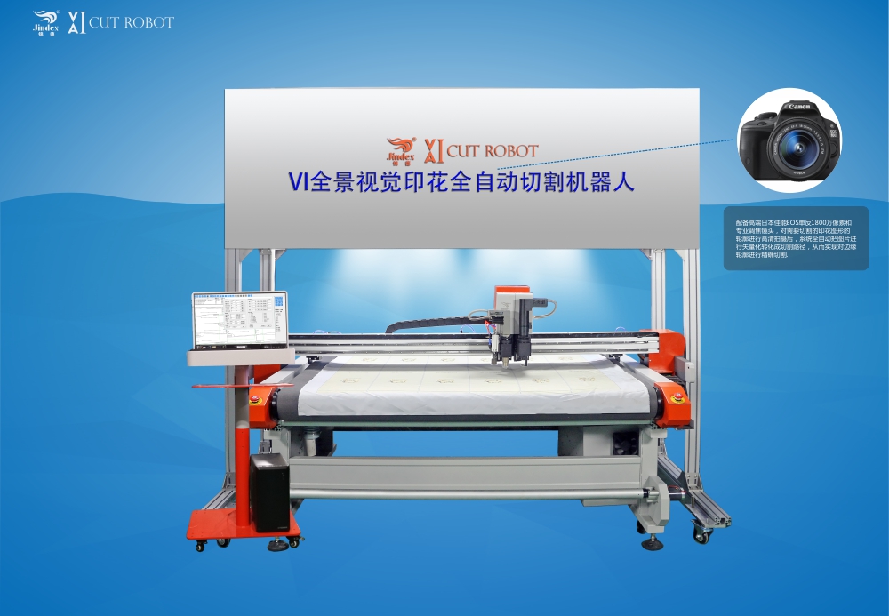 Jindex self-developed CCD SLR camera panorama vectoring system, equipped with high-end Canon EOS SLR 18 million pixels and professional focus lens, the contour to be cut after printing graphics HD shooting, the picture fully automatic system The vectorization is transformed into a cutting path to achieve precise cutting of the edge contour.